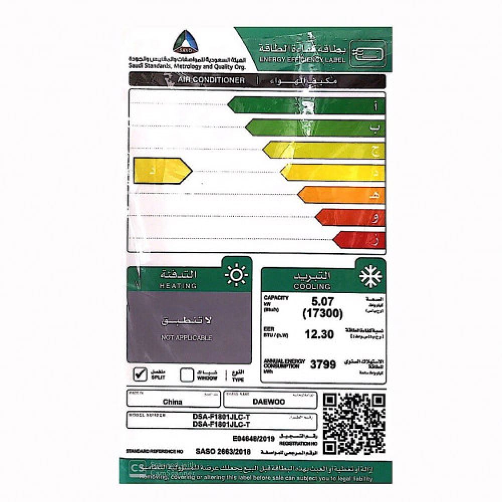 مواصفات مكيف سبلت دايو 18000 وحدة – بارد :