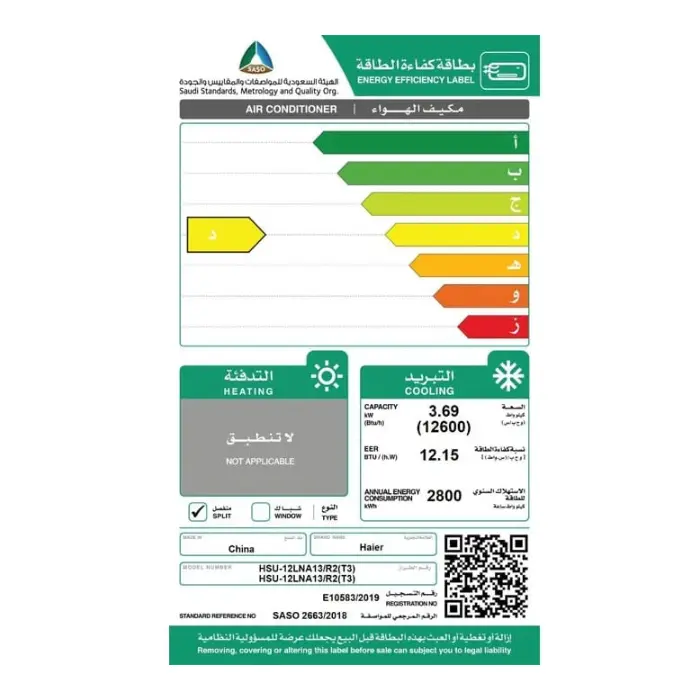يجمع مكيف سبلت هاير بين الأداء القوي والتوفير في استهلاك الكهرباء، مما يمنحك تبريدًا ممتازًا بتكلفة تشغيل منخفضة ويضمن لك راحة مستمرة.