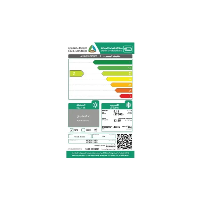 يعمل مكيف سبلت 17500 وحده ال جى – انفرتر – بارد بكفاءة عالية مع تقليل استهلاك الطاقة، بفضل تقنية الإنفرتر الذكي. هذا يتيح لك توفير فواتير الكهرباء دون التأثير على قوة التبريد أو التدفئة، مع الحفاظ على أداء مستقر وموثوق طوال أيام السنة