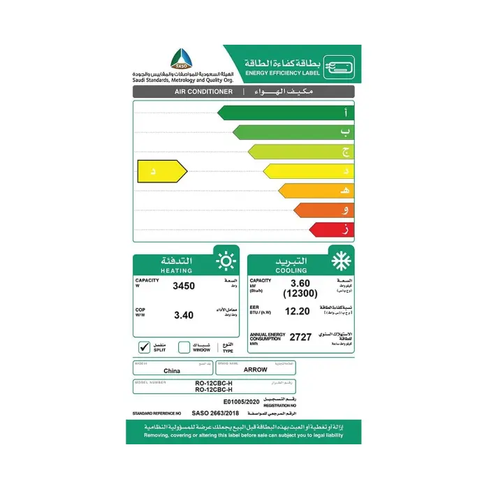 مكيف سبليت ارو ايليت 12300 وحدة حار – بارد Ro-12cbc-h