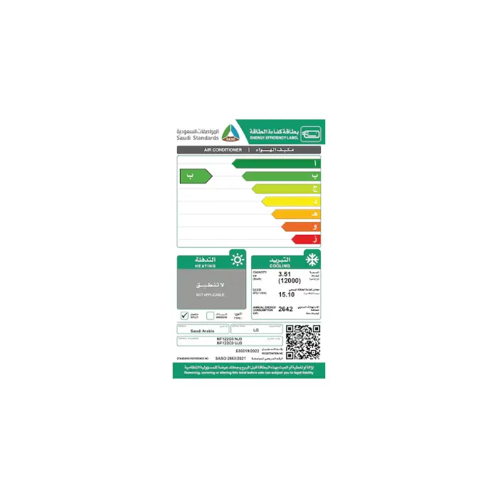 مكيف سبليت ال جى فريش 12000 وحده – انفرتر – بارد NF122C0