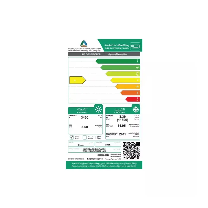 مكيف سبليت جري 12 ألف وحدة بولر – Wi Fi – حار\بارد GWH12AGC-D3NTA1A
