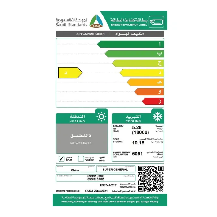 مكيف سبليت سوبر جنرال أونو 18 الف وحدة – بارد Ksgs183ge