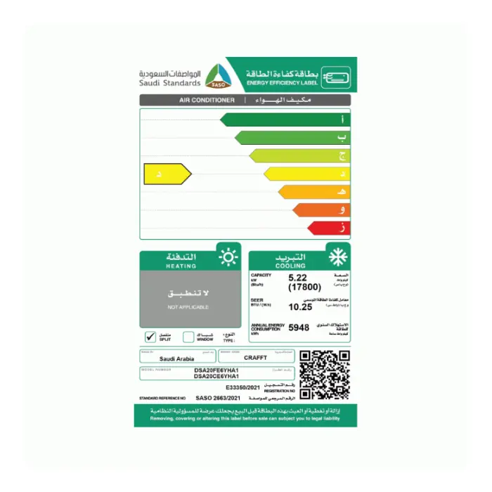 مكيف سبليت كرافت برايم 17800وحدة – بارد DSA20CE6YHA1PP