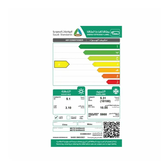 مكيف سبليت ميديا إليت 18 ألف وحدة – حار / بارد MSTE18HRNAG2