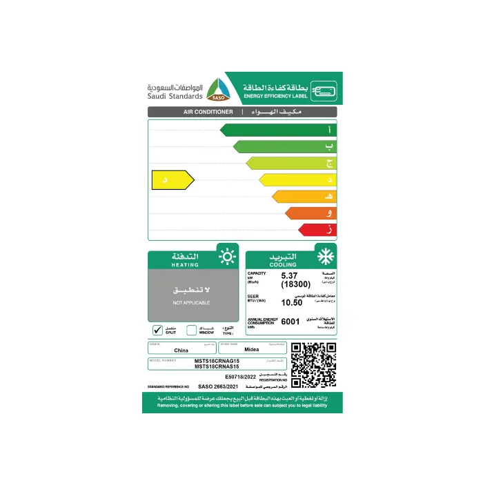 مكيف سبليت ميديا سوبر كول 18 ألف وحدة – بارد MSTS18CRNAG15