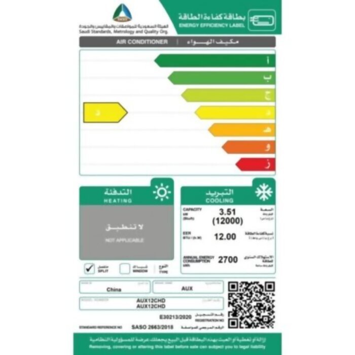 مواصفات مكيف سبليت 12 الف وحدة AUX هاي اند – بارد :
