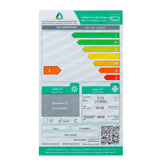مميزات مكيف شباك ستار واي 17800 وحدة – بارد :