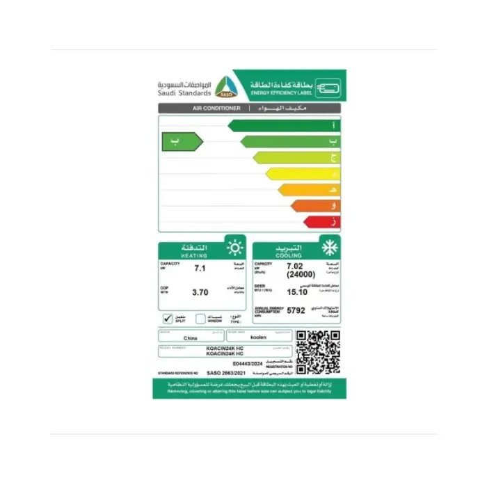 صُمم مكيف كولن سبيلت 24000 وحده – Wi Fi – حار/ بارد ليعمل بكفاءة عالية مع استهلاك منخفض للكهرباء، مما يقلل فاتورة الكهرباء دون التأثير على قوة التبريد أو سرعة الوصول لدرجة الحرارة المطلوبة.