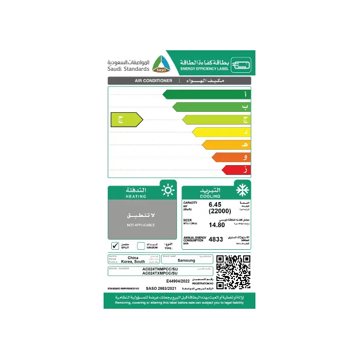 - غاز تبريد صديق للبيئة فئة R410A