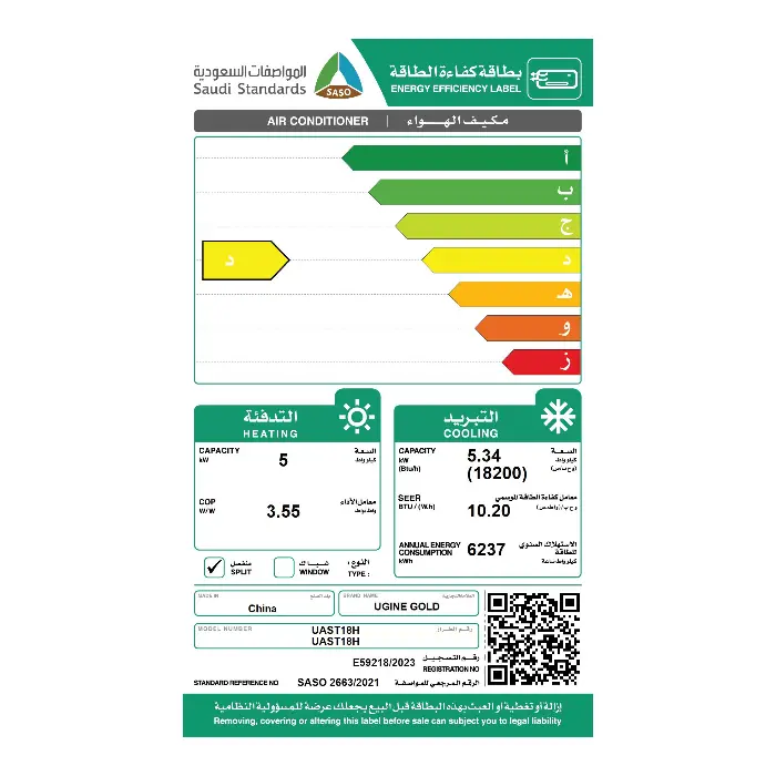 مكيف يوجين جولد سبليت 18 الف وحدة – حار / بارد UAST18H