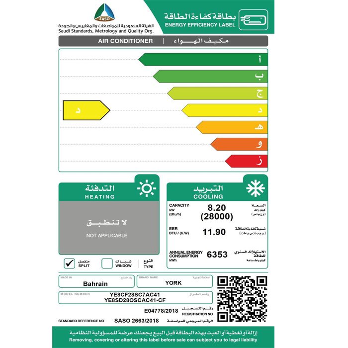- التبريد بقدرة فعلية : 28000 وحدة