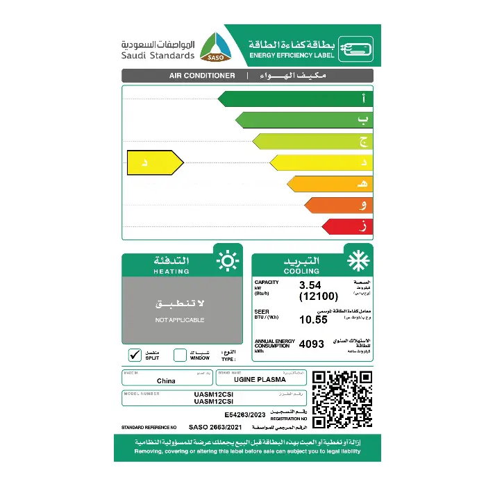 مكيف 12000 وحدة سبليت يوجين بلازما ــ بارد UASMI12C