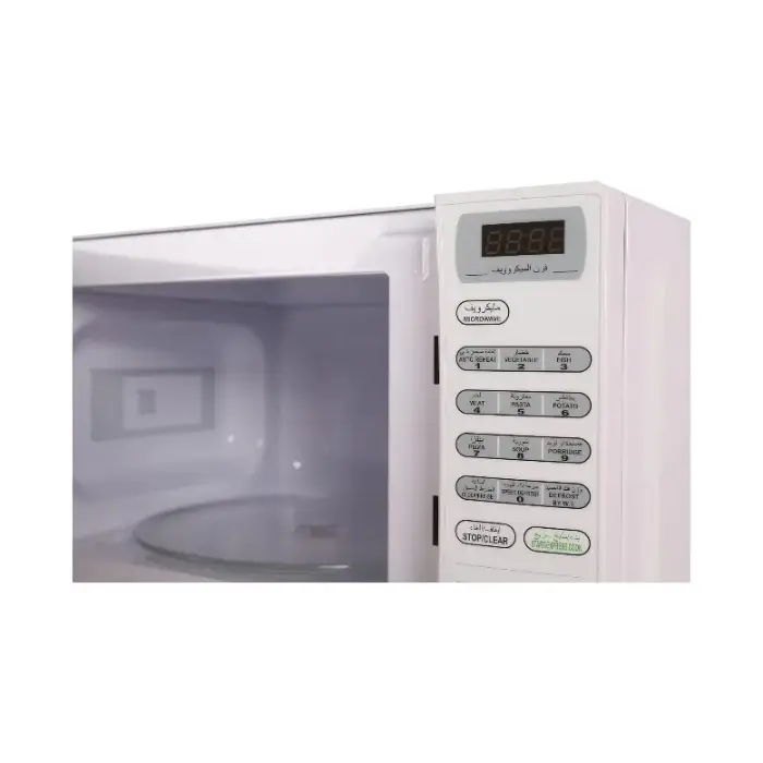 يتميز ميكروويف 20 لتر بـ شاشة رقمية (Digital Display) عصرية تتيح لك قراءة الوقت المتبقي بوضوح ومتابعة إعدادات الطهي بدقة. واجهة التحكم الرقمية تجعل من عملية ضبط “تايمر” الغذاء أو اختيار البرامج أمراً بسيطاً ومنظماً، مما يضفي لمسة تكنولوجية أنيقة على مطبخك.
